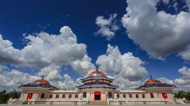 成吉思汗陵,位于鄂尔多斯市伊金霍洛镇附近,距离鄂尔多斯市区约50公里。成吉思汗陵是一代天骄成吉思汗的衣冠冢所在地,是达尔扈特人700年以来一直守护的陵寝。需要注意的是,在成吉思汗陵附近,还有一个成吉思汗陵旅游区(东联景区),这个景区是2004年某集团新建的人工文化主题公园,由气壮山河门、“铁马金帐”群雕、亚欧版图等景点组成。两个景区分别售票。古代蒙古族有密葬的传统。传说,成吉思汗下葬时,为保密起见,曾经以上万匹战马在下葬处踏实土地,并以一棵独立的树作为墓碑。为了便于日后能够找到墓地,在成吉思汗的下葬处,当着一头母骆驼的面,杀死其亲生的一头小骆驼,将鲜血洒于墓地之上。等到第二年春天绿草发芽后,墓地已经与其他地方无任何异样。在这种情况下,后人在祭祀成吉思汗时,便牵着那头母骆驼前往。母骆驼来到墓地后便会因想起被杀的小骆驼而哀鸣不已。祭祀者便在母骆驼哀鸣处进行隆重的祭奠。可是,等到那头母骆驼死后,就再也没人能够找到成吉思汗的墓葬了。当你走入景区大门,迎面就是宏大的门牌楼和成吉思汗铜像广场,再往前走就是陵园的主体建筑——金碧辉煌的成吉思汗陵宫。乳白色的墙壁,朱红的门窗,金黄宝顶、蓝色的云图,极具蒙古民族特色。这里的建筑保留了成吉思汗八白宫的形状特点,由正殿、后殿、东西殿、东西过厅组成。在正殿正中,有成吉思汗的塑像,背景是“四大汗国”的疆域图。你还能在这里观赏到大汗曾经使用过的弯刀、神弓和长矛。在东西廊中,有大型的壁画供你观赏,壁画描述了大汗出生、遇难、统一蒙古部落等重大事件。在陵宫的左侧是苏勒德祭坛,这里是供奉成吉思汗战神的地方,以“主苏勒德”和四柄“陪苏勒德”组成的“四斿哈日苏勒德”,是成吉思汗所向不可战胜的战神。陵宫的右侧是文化展览馆,通过图片、实物等,系统地展示了成吉思汗陵沧桑历史和古老神秘的成吉思汗祭祀。在文化馆的旁是伊希哈屯祭祀殿,这里是供奉拖雷(成吉思汗第四子)妻子的宫殿。托雷的妻子伊希夫人,为蒙古养育了蒙哥、忽必烈两代大汗。院内还供奉着成吉思汗胞弟哈撒儿、别里古台以及拖雷的灵包。每天早上八点半,在陵宫会举行传统的祭祀活动。每年的农历三月十七日,是成吉思汗建立不朽战功的日子,当天景区内会举行隆重的祭奠“苏勒定”大会,热闹非凡。