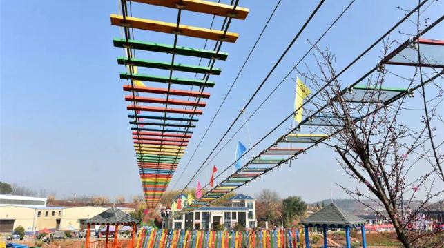 衡阳梅花小镇山野度假区依托梅花村现有的自然山水资源,着力于建设国际化高标准山地户外探险公园;度假区一期游玩项目丰富多彩,包含极具体验性的网红项目——高空玻璃观景塔,囊括玻璃栈道、天空之境、丛林飞梭、高空漂流、卡丁车、摩天轮、冰雪王国等一批极具体验性的户外运动项目。