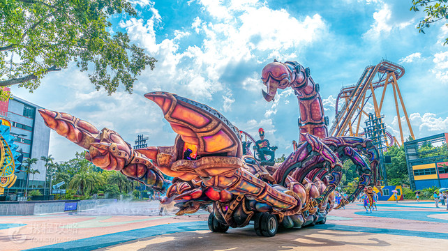 长隆欢乐世界拥有多个大型游乐设备,诸如垂直过山车、超级大摆锤等,可以和小伙伴们一起感受刺激的体验。长隆欢乐世界同时进行了超级演艺、游乐设施以及餐饮配套服务等方面的创新升级。重点打造全新六大主题区域,两大演艺广场,全新花车和巡游动线,全面升级超动感游乐设施等,将给你带来全新的游玩体验。六大主题区:丛林探险、律动天地、欢乐嘉年华、朋克奇境、尖叫地带。六大主题区域强化演艺元素,引进亲子游乐项目,观感体验再升级。演艺广场:中央演艺广场。超级演艺广场为园内演艺广场,主舞台神秘概念全新来袭,广场中心舞台采用升降设计,可与主舞台联通。中心可营造喷泉、灯光、火焰等呈现,演出内容更是劲爆来袭。另外,中央演艺广场以火箭过山车为舞台背景,全新打造浪花主题舞台,定时上演《青春热舞音乐派对》,青春可爱的女团表演、狂热似火的摇滚乐队、时尚潮派的街舞,让你感受一场不一样的演艺热浪。在长隆欢乐世界内还有数十项适合亲子玩乐的游乐项目,欢乐嘉年华的霹雳转椅和摇摆屋,让大人小孩都能沉浸在欢乐的时光里。长隆欢乐世界全新推出椰林餐厅美食广场,广场建筑采用欧式风格,建造三间主营餐厅,分别菜式出品:粤菜、西餐、东南亚美食,适合不同的游客需求,承载量更大。与此同时,园内的各大餐厅食品均全面提升出品,更美味更舒适。▲ 巡游全程开创式无栏杆动线,采用地面射灯使游客自觉形成安全距离,实现真正意义的零距离,提升游客体验,舒心观看巡游▲ 跳楼机,惊险刺激▲ 空中秋千▲ 大摆锤,感受360度的旋转吧▲ 过山车▲ 场场不一样的演艺热浪