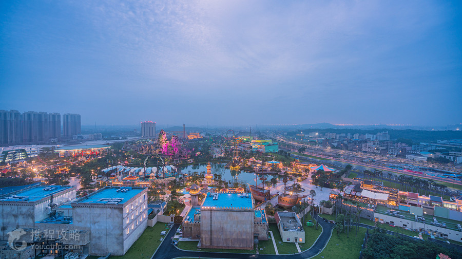 广州融创乐园总占地面积约59.6万平方米,是独具南越文化与岭南风格的大型室外主题乐园。千年商都、海上丝路、岭南印象、南越古国、五羊传说、梦幻花园6大主题区域穿越古今,带来妙不可言的欢乐体验。 乐园拥有全感官超震撼8K飞行影院“飞越广东”、无限刺激的独创双轨双车过山车“双龙飞舞”、风格各异的高科技游乐设备,可惊险可浪漫、可互动可体验、可学习可娱乐。此外,裸眼3D灯光水幕大湖秀《丝路情缘》、无限欢乐的梦幻花车巡游等精彩演艺,带给游客难忘的沉浸式视觉盛宴。 乐园充分展现广东本土文化,同时中西合璧,结合高科技游乐元素,除室外游玩设备之外还打造一系列室内创新恒温剧场与夏日清凉项目,打破季节与天气的限制,成为四季全天候主题乐园,满足每一位游客每时每刻的欢乐需求。 【游玩攻略】 飞越广东 先进科技重磅打造的全感官超震撼飞行影院,8K放映技术与巨型全景高清球幕带来震撼的视觉体验,沉浸式飞行座椅与风、水、声、光等沉浸式体验,让游客尽情翱翔天际,片刻穿越古今,如身临其境般饱览广东独有的壮丽好风光! 花苑奇境 享欢乐亲子时光:在量身打造的梦幻花园中,享受花开蝶舞、奇幻欢乐的亲子时光。 为孩子们量身定制的家庭奇幻项目。色彩缤纷奇趣的大型悬挂过山车在室内与室外尽情穿梭,途中更有趣味十足的媒体互动体验,为孩子们打造一次梦幻、童话的探险之旅。 花海冲浪 乘着水浪,在色彩缤纷的滑梯上蜿蜒而下,时而刺激俯冲,时而领略周围的美丽花海,享受水花四溅的惊险与畅快。 双龙飞舞 超刺激尖叫之旅:有无数种方式让你肾上腺素飙升,让你急速飞翔,让你触摸天际! 可乘坐可悬挂,可单双轨相互变化,这就是广州融创乐园独创的双轨双车过山车。乘客可根据喜好选择乘坐方式,两车同时发射,时而比肩竞速,时而惊险交错,两车近乎碰撞的感官冲击带给游客无限刺激感。 怒海狂涛 激流勇进与过山车相结合的全新刺激体验。黑暗的水道忽而垂直倾斜提升,忽而旋转倒滑,与此同时洪水、大火呼啸而来,在双重刺激中,湿身体验世界末日的暴击之旅。 云霄塔 模拟太空飞船上天时的速度感与自由落体时的失重感。1.8秒瞬间弹射至59米高空,又从高空秒速坠落,一段魂飞魄荡的冲天旅程从此开启! 儿童剧场《科学秀》 动植物、昆虫等偶装形象灵活生动,将各种生物与剧情巧妙结合,寓教于乐。用轻松欢快的剧情、滑稽幽默的表演以及有趣的互动设计带观众们走进神奇的反转世界。 梦幻花都花车巡游 在“百花女王”的召集下,来自中国的“精灵仙子”与异国宾朋欢乐集结,开启缤纷盛大的梦幻花车派对。各色精心设计的主题花车隆重出街,身着多彩华服的演员们来到你的身边,带来精彩的互动表演,邀请你共同投入这片欢乐的海洋。 大湖秀剧场 高科技巨型水幕投影与声光火电技术带来这场震撼的裸眼3D灯光水幕大湖秀。在梦幻的大湖舞台上以水为幕,一场精彩的裸眼3D光影盛宴刹那间震撼你的眼球。以海上丝绸之路为背景的动人故事情节,更让人无限感动。