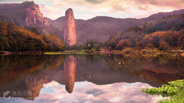 缙云仙都景区位于浙江省丽水地区缙云县境内,因为风光异常秀丽,众多影视剧先后在此拍摄外景,如《天龙八部》(张纪中版)、《笑傲江湖》(于正版)、《古剑奇谭》等,在游览途中,你可以寻找一下剧中场景。另外,你还可以在步虚山、朱潭山上俯瞰一柱擎天的鼎湖峰,和它映在好溪中优雅的倒影。