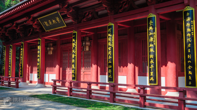 仙都观,又称赵侯祠、赵侯庙、乌伤侯庙,是缙云仙都景区古老的庙宇之一。这里供奉的是赵炳。赵炳(公元1008——?年),汉代人,精通法术,崇尚清洁简朴,用向东流淌的水来祭神,把桑树皮削下来做祭礼,用清水变出美酒,用刀随便削去一物,便可变出熟肉。用盆装上清水,就可以看见鱼龙。赵炳云游金华缙云一带时,当地遭兵乱,瘟疫大起,赵炳为百姓疗愈,救了许多人。为了纪念他,百姓在此给他建了祠堂。汉代皇帝知道后,敕封赵炳为大将军和乌伤侯。乌伤侯是因为当时缙云仙都属于乌伤县。招隐洞、神医洞中还供奉着自古到今八位神医的石像,保佑人们平安、健康、幸福。青龙岩:赵侯祠的门口有座巨型岩石,形状象龙口,人们称其为青龙岩,与大肚岩隔着马路对峙。岩石的西侧有梯云洞,即秦汉的古长亭所在,又是台州到金华的必经之路,岩石的东侧有神农洞、招隐洞。大家看,龙头、龙眼、龙鼻、龙口幽雾错叠,很是逼真。古人信神,到这里都投钱币以卜吉兆,投一次中的为大吉,投两次中的为发财,投三次中的为平安。天鹅孵蛋:招隐洞对面有个的石龙虬体回环的山谷,谷口堆放着许多硕大无比的巨石。如果从赵侯舟向谷内眺望,这堆石头的上部,酷似一只天鹅;下部石头较小,形如鸟蛋。人们望形生义,取其名为天鹅孵蛋。如果进入谷中,立于石下,这堆巨圆蛋石,部分已开裂,似乎被刀剑所剖,所以人们叫它为仙剖岩或剖瓜石。此地,又是一个三面通风的山洞,冬暖夏凉,特别是酷暑,内外温差近10度,是避暑的绝妙之处。《两个巡逻兵》、《摩雅傣》、《连心坝》、《书剑恩仇录》、《哪吒》等影视片,都在这里拍摄过。