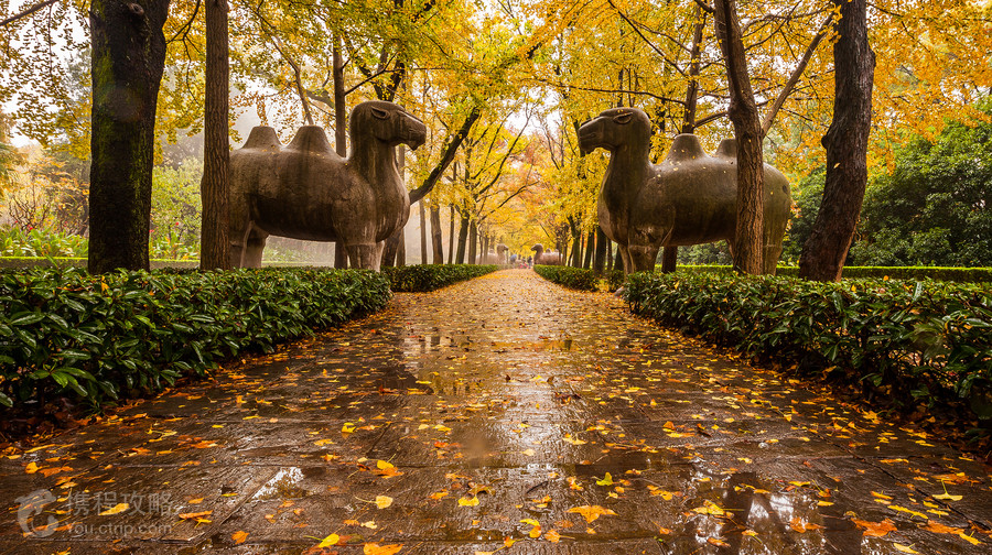 明孝陵在钟山风景区内,是明太祖朱元璋与马皇后的陵墓,陵墓宏伟壮观,代表了明初建筑和石刻艺术的成就,也直接影响了明清两代帝王陵寝的形制。墓区分布 墓区总体布局分为两部分,一是蜿蜒曲折的陵墓神道,二是陵寝主体建筑,即朱元璋葬地。明孝陵寝主体建筑包括文武方门(即正门)、享殿、方城、明楼、宝顶(即崇丘),皆按传统的中轴线配制,并筑有围墙。明孝陵“前朝后寝、前方后圆”的陵宫布局设计和方城明楼、宝城宝顶等建筑形式,开创了中国明清帝王陵寝建设规制的先河,被誉为中国帝陵发展史上的一座里程碑。神道 神道是从下马坊至明孝陵正门,长达2400米,曲折幽深,一改中国传统帝陵神道笔直的格局。神道又分为石象路与翁仲路两段,两边的石雕是一大亮点,分别立有高大的石兽12对和文臣、武将各2对。石雕由整块石料雕凿而成,造型简朴、图案清晰、工艺精湛。每到秋季,这里的银杏和红枫也是一景,吸引着大批热爱摄影的游客。享殿 享殿也叫孝陵殿,本来是供奉朱元璋和马皇后神位之处,原殿已毁,尚存3层须弥座台基、6块浮雕云龙山水大陛石。现在这里是史料陈列室。方城 方城是孝陵宝顶前面的一座巨大建筑,外部用大条石建成,底部为须弥座。而明楼就在方城之上,原本的黄瓦大屋顶已毁,后来进行了修复。沿着方城左右两侧的步道即可登上明楼。宝顶方城以北则是直经约400米的宝顶,也称宝城,是朱元璋和马皇后的寝宫所在地。从方城前正中的拱门进去,里面是圆拱形隧道,爬54级台阶走出隧道,外面就是宝顶南墙,墙上有后人刻的“此山明太祖之墓”,到这里就不能再往前了。宝顶下面是朱元璋墓的地宫,没有进行挖掘。梅花园和樱花园 梅花山在明孝陵正南边,遍植梅花,山下有梅花谷,共13000余株梅树。明孝陵腊梅园分布于金水桥至明楼中轴线两侧,占地80余亩,共植腊梅3000余株,涵盖3大品种群,60多个品种,每年的12月至来年的2月下旬,均为腊梅观赏期。梅花山上还可以看到孙权墓。神道石象路附近有樱花园,每到3月底4月初来此赏樱的游客络绎不绝。红楼文艺苑是一处体现红楼文化和浓郁江南风格的园林景观。而北边的紫霞湖则是避暑纳凉的佳地。
