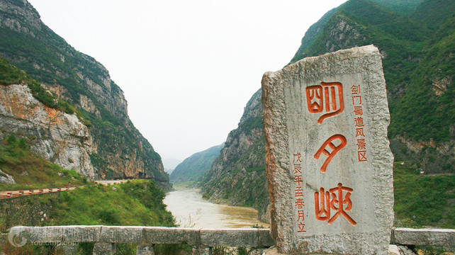 明月峡古栈道位于广元市朝天区嘉陵江谷口,是剑门蜀道风景旅游线的起点。古栈道位于朝天明月峡谷、老川陕公路下,现只有少量遗迹,除了石孔以外,很多都是后期修复的。栈道又名阁道,是古代人为了生活及战争的需要而修建的。闻名于世的古栈道与长城、运河被列为中国古代三大杰出建筑,是蜀汉先民们勤劳智慧的结晶。明月峡古栈道是迄今全国所有栈道中,地理位置险要、形制结构科学、保存完好、具有古栈道风貌的一处。