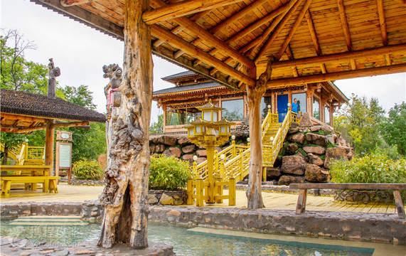 宝宇森林生态小镇坐落于小兴安岭山脉伊春西岭林场,洗浴中心区的男女浴区总建筑面积1300平方米。里面包含男女浴区各三个室内温泉,温度分别是:15度、38度、42度。休息大厅为二、三层共有60个躺椅,每个躺椅都配有高清电视。浴区共有134个智能更衣柜。可通往一层温泉游泳池,温泉游泳池占地面积700平方米,是东北的温泉游泳池,并配有鸭嘴冲击浴和枪林弹雨浴。 室外森林温泉汤池11个,泉水来自小兴安岭西岭山脉2700米地下。总占地面积2000平方米,每个汤池形态各异,坐落在景区林间,故称“森林温泉”。所有装饰是200年以上的“明子”纯手工雕刻而成,其它配套设施为全木质工艺,这里是艺术与大自然的完美结合。能让人们远离都市的喧嚣,与大自然融为一体。