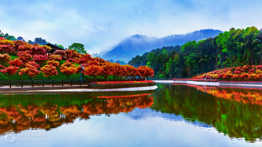 南湖多彩植物园从西往东形成人工种植展示区、湖区和山地自然生态山林三个区域,并根据当地气候、土壤等条件在园区种植红枫、玫瑰、杜鹃、格桑花、虞美人等多种观赏类花草树木,是一个备受欢迎的踏青公园。整个园区共有2万多株红枫,品种有日本红枫和中国红枫。日本红枫到达好的观赏期时(3-5月、10-11月),阳光下漫山遍野的红枫与天际线相连,似一道道火红夕阳铺满天边,红艳艳、金灿灿,蔚为壮观。园区还育有千年杜鹃、多头玫瑰20万株、绵延千米的日本晚樱走廊,上百亩桃花林等多种观赏植物,共同装点出多彩的春天。南湖多彩植物园位于风景秀丽的巴南区南彭镇南湖畔,离主城仅三十余公里,在园区高处的观景台,可俯瞰整个南湖风光。在植物园不仅可以观赏红叶、鸟瞰湖景、登高远眺、爬山健身,还可在附近的农家乐品尝地道的乡村美食,欣赏美丽的湖光山色。