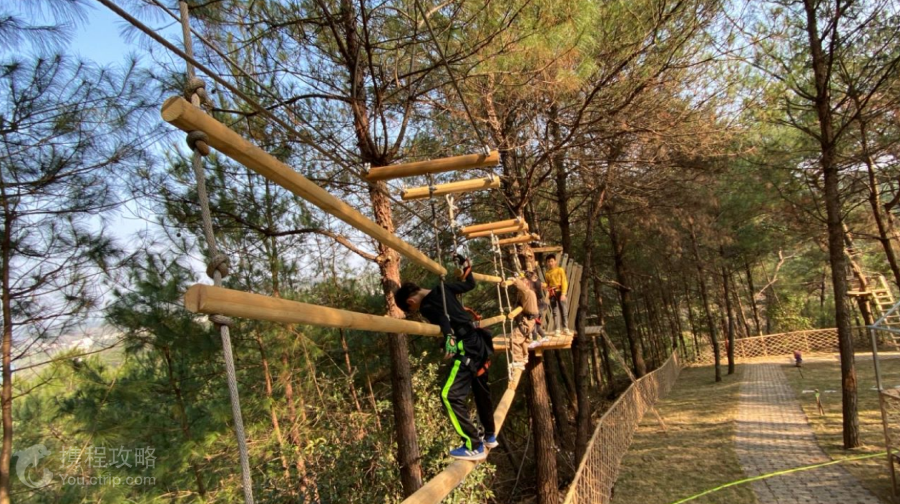 广西飞越丛林探险乐园位于南宁市西乡塘区,毗邻芦仙山和广西艺术学院罗文校区,景区内的特色项目就是利用悬空桥梁、网道、步道、木桶、泰山秋千、飞狐索道和其他趣味环节等方式进行树木间的探险。