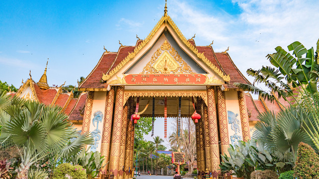 西双版纳傣族园位于景洪市东南的勐罕镇。西双版纳傣族园由保存较完好的五个傣族自然村寨组成,分别是曼将、曼春满、曼听、曼乍、曼嘎。无论你走进哪一个寨子,都会看到典型的缅式佛塔和传统的傣家竹楼,感受到浓郁的傣家文化。 走进景区大门,首先是迎宾广场,在这里接受热情的傣家人跳迎宾舞、唱祝辞、洒水祝福。之后来到曼春满古佛寺,这是西双版纳古老的佛寺之一,已有1400多年的历史,进到寺中,可在琅琅的诵经声中祈福。 西双版纳傣家人隆重的节日莫过于泼水节,在西双版纳傣族园的,你可以感受到这热烈的场面。这里“天天都是泼水节”,上百人聚拢在水池边,相互泼水,洗去尘埃和罪孽。记得一定要带一套替换的衣服。