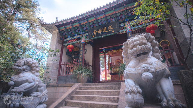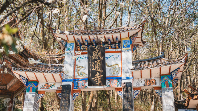 感通寺位于大理苍山圣应峰南麓,大理古城和下关之间,又名荡山寺,距大理古城约5公里。感通寺背靠四季积雪不化的苍山,面对烟波浩淼的洱海,登苍山的索道之一“苍山感通索道”就位于山门旁边。感通寺历史久远,历经沧桑,几度兴衰,极盛时期有达三十六所庵院的规模。 沿着苍山感通索道下站旁的寺院山门进入,沿着松涛阵阵的步道前行,5分钟即可抵达寺庙。寺庙略显落败,规模较小。正殿前挂有“一笑皆春”的匾额,是明朝高僧担当法师的墨宝。寺院后面有一座舍利塔形状的担当墓,墓碑高3.5米,碑文中详细的记载了但当大师的生平,有兴趣的话,可以凭吊一番。寺院内各处有7块碑刻,记载着寺庙的兴衰。墓碑旁有当年明代著名学者杨升庵居住过的写韵楼,也是值得一看的古迹,此外无他。