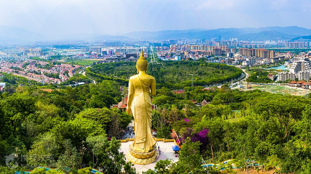 西双版纳勐泐文化旅游区(勐泐大佛寺)位于西双版纳傣族自治州景洪市,是在古代傣王朝的皇家寺院“景飘佛寺”的原址上恢复重建的,有3000多级台阶,体力好的游客可以步行登顶,当然也可以选择乘坐观光车。 景区是建在山上的,已东南亚国家寺庙建筑和佛像为主。在山顶可以眺望景洪市的城市美景,也可以在寺内进行佛教活动,感受佛教文化。山下会有泼水节表演,具有当地特色,值得一看。 “景飘佛寺”是傣族历史上一位名叫拨龙的傣王为纪念病故的王妃南纱维扁而修建。王妃一生信奉佛法,所以每逢节日傣王 就亲临寺院,举行大型法会,以纪念爱妃同时弘扬佛法。