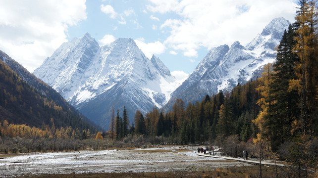 四姑娘山双桥沟景区得名缘于沟内的两座木桥。沟内主要以雪峰、牧场、草地、森林等为主,是四姑娘山景区美丽的一条沟。漫步沟内,可体验到真正的牧区风光。主要景点有阴阳谷、四姑娘山景区-猎人峰、四姑娘山景区日月宝镜观景点和五色山等。当地老百姓为了通行方便,在沟内搭建了两座木桥,其中一座是由杨柳木搭建而成,俗称杨柳桥;另一座由红杉木搭建而成,俗称便桥。四姑娘山双桥沟景区由此得名。四姑娘山双桥沟景区内山势陡峭曲折,林木葱郁。既有低山地带常见的成片桦木林、柏杨林,也有高山带的云杉、冷杉、红杉更有成片的沙棘、灌木、落叶松。每当春秋季节,沟内五颜六色,蔚为壮观。沟内有观光车直达沟尾,可以毫不费力,轻松观赏沟内奇景。