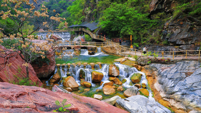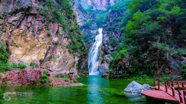 河南宝泉旅游区位于河南省新乡市辉县市境内,总面积110平方公里,包含大峡谷和河南宝泉旅游区-宝泉崖天下景区两个园区,通过索道和电梯实现双园区上下连通的大循环畅游模式。河南宝泉旅游区森林覆盖率98%,平均海拔1150米,年平均气温18℃,是理想的观光、度假、戏水和避暑胜地。 河南宝泉大峡谷,以水冠太行,高峡平湖、五步一潭、十步一瀑,见龙瀑、河南宝泉旅游区-宝泉双龙瀑、玉女瀑、飞龙瀑、青苔瀑等十多处形态不同的瀑布组成的“中华千瀑谷”堪称太行奇观。春赏花、夏戏水、秋拾趣、冬玩雪,四季活动精彩不断,中原地区山水休闲、网红打卡之地。 河南宝泉旅游区-宝泉崖天下景区,以崖惊天下,万丈红绫、百里赤壁,如屏如画。徒步丹崖天路,感受移步易景;寻觅太行之心,尽览驼峰奇观;俯瞰游龙湾,探秘中国曲峡;仰望峰峦叠嶂,叹止鬼斧神工;悬崖过山车、悬崖蹦极、悬崖攀岩、悬崖秋千、挂壁栈道和悬崖宿集等惊险刺激的悬崖体验项目,成就一段“天下惊崖”之旅。