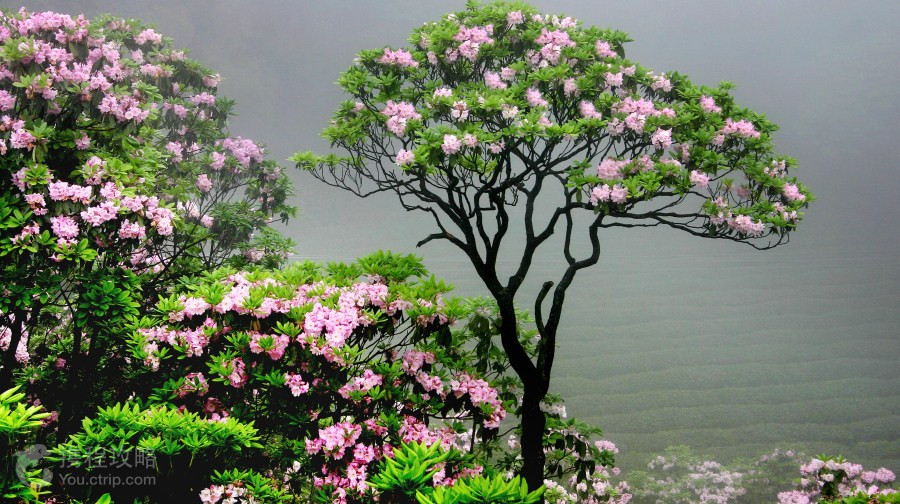 华顶国家森林公园位于台州市天台县,华顶是天台山主峰,这里山色秀丽,给人一种远离尘嚣的超脱感。每年5月,山上的云锦杜鹃大片大片的盛开,是这里景色动人的时刻,许多游人专程来此赏杜鹃。而且,夏天山中温度平均28度,是江浙值得推荐的避暑胜地。自古有许多僧人、旅行家和诗人曾在此频繁过往,爬山赏景时,亦能遇见前人留下的遗迹,感受他们当时的心境。华顶国家森林公园大门到登山口还有一段山路,自驾车可开到附近的停车场。汽车北站每天8:00和13:00有班车发往这里,停靠登山口附近的华顶山庄。山上的路不难走,仔细玩大约需要大半天,也可花几小时爬爬山,浏览山中古迹。山中景色大致可分为两部分,一是登山口往左的云锦杜鹃林,可爬山赏景;二是往右的华顶寺和霞客古道,人文景观聚集。如果你在五月来到这里,云锦杜鹃是不容错过的,山中的杜鹃树不仅规模大,而且树龄许多在200年以上,国内少有。徜徉其中,呼吸着淡淡的花香,心旷神怡。杜鹃林中部有太白读书堂、鹅字亭等景点,归云亭和拜经台(华顶之巅)对面的凉亭是山中观日出日落的佳处。不过,如今拜经台上是一处雷达站,游人不可靠近,亦不许拍照。一些驴友选在霞客古道徒步穿越天台,重走徐霞客之路(国清寺-霞客古道-华顶寺,约25公里)。普通游客在古道入口处的石碑前留念,再走一段绿树成荫的小道,感受一下即可。这里也是智者大师早开设道场的地方,有华顶寺、茅篷等古迹可访。茅篷遗址在古道靠近霞客桥的地方,而华顶寺靠近登山入口,周围集中了墨池、智者泉、千年杜鹃王等景观,墨池据说是王羲之年轻时在华顶寺习字的洗砚处,杜鹃王附近的永字亭则对应的是王羲之写“永”字的故事。登山入口附近的华顶山庄可以住宿,茅篷小别墅很有特色,春夏季不妨在山中小住几日。住客仍需购买华顶国家森林公园门票,不过大约下午五点之后售票处便下班了,可免费入山。由此步行去拜经台附近看日出大约需要半个多小时,日出前山上比较冷,需注意保暖且结伴同行。山上交杂的高山云雾茶田也是一景,品茶赏景十分惬意。