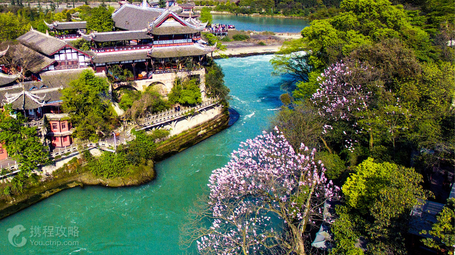 都江堰景区,位于都江堰市城西岷江干流上,由秦国蜀郡太守李冰及其子于西元前256年左右修建,是目前中国保存完整的古代水利工程。工程由都江堰景区鱼嘴分水堤、飞沙堰溢洪道、宝瓶口引水口三大主体工程和百丈堤、人字堤等附属工程构成,把汹涌的岷江分隔成外江和內江,外江排洪,內江引水灌溉,使川西平原成为了“天府之国”。 都江堰景区碧水浩荡、危崖奇峰、古木参天的佳自然风光和深厚的文化底蕴,使它当之无愧地成为世界风景名胜区。有南桥、离堆古园、卧铁、堰功道、张松银杏、清溪园、伏龙观、都江堰渠首三大主体工程、都江堰景区鱼嘴分水堤、飞沙堰溢洪道、宝瓶引水口、都江堰景区-安澜桥、都江堰景区-二王庙、秦堰楼、松茂古道、敬修之治水德政坊、玉垒山公园-禹王宫、玉垒山公园-玉垒关、凤栖窝、斗犀台、宣威门、玉垒山公园-城隍庙等著名景点。
