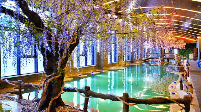 长白山聚龙火山温泉位于国家5A级景区长白山北景区老山门处,距离新山门1.5公里,长白山聚龙火山温泉采用管道直引方式引入长白山火山自溢温泉—聚龙泉。室内建筑面积3300多平方米,内设长白山特色草药温泉池、儿童嬉水池及多功能水疗区等10个温泉池;室外占地面积3600多平方米,园林景观式温泉池21个。其中的萌宠观赏区饲养着可爱的折耳兔、呆萌的法斗、憨憨的小香猪、美丽的蓝孔雀以及各种鸟类,叽叽喳喳,伴着原始森林,听天赖之音,享天然氧吧,天池汤泉每一个池子都增添了仿生造型,即体现了我们设计主题人与自然合谐相处,也提升了游客体验度,这里有优质的水源、贴心的服务,原生态环境,是您一年四季泡温泉圣地,来长白山感受12度粉雪温暖之美、22度清爽之美,那么一定不要错过82度温度氤氲之美。萌宠乐园动物:珍珠鸡、浣熊、矮脚马、金毛、阿拉斯加、法斗、白狐、安德鲁貂、白貂、骆驼、驴、山羊、香猪、野猪、松鼠、鹦鹉、土拨鼠、羊驼、鸽子、兔子、龙猫。娱乐设施: 滑梯 丛林攀爬网 丛林荡木、星空帐篷、丛林蹦床、蹦极床、丛林秋千、丛林跷跷板、丛林钢琴。