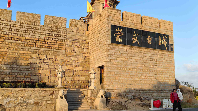 崇武古城风景区位于惠安县东南海滨,濒临台湾海峡,是明洪武二十年(1387年)江夏侯周德兴为抵御倭寇所建。但至今,古城留下来的也只有一段古城墙了,所以,为了景区的可看性,古城植入了惠安的绝活——石雕。 整体而言,崇武古城风景区的看点有3大块:古城墙、石雕和海边的岩礁。 崇武古城风景区的房屋不是用红砖而是用整块方形大石建成,所以又被叫做石头城。虽然年代久远,但是用石头砌成的城墙依旧很完整。城墙内有几个村子,也都是石头砌成的房子。古城城墙内免费参观,只有城墙到海边的一段才收费。这些城墙下的居民区还生活着整个崇武较早的居民,也就是当年抗倭军队的后裔。 你可以爬上老城墙处走一走。站在高处的灯塔处,清晰可见整个古代军事战略要地的城墙轮廓,视野开阔,可以一览整个海面,还能望见海上女神妈祖像的柔美背影。 石雕更不用说了,惠安给人的印象就是惠安女和石雕,这里到处都能看到石雕。比如有水浒里面的将士;有黑猫、白猫等动物;有西游记里的人物形象等。虽然看不出石雕内容和古城之间的联系,感觉是挺商业化的存在,但是拍拍照,欣赏下石雕还是不错的。 当然,较美的地方可能还是海边。海边有岩礁,除外,沙滩上也有不少的贝壳。海边走走感觉也挺不错的,可以沿着海岸线散步至中间的小沙滩,退潮的时候还可以捉到小虾和小螃蟹。岸边也有烧烤店可以吃烧烤。 崇武古城风景区周边有卖影雕的地方,可以买来当纪念品,有机器雕刻和手工雕刻2种,价位不等。 关于住宿 崇武古城风景区住宿很方便,推荐的比如有惠安崇武大酒店、惠安海峡酒店、泉州惠安崇武西沙湾假日酒店等,前2家离景区及交通站点很近,后一家就在沙滩旁边。 关于用餐 崇武古城风景区是个比较成熟的景区,所以酒店、大排档等的都不愁。另外,鱼卷算是这里的一种特色美食,推荐一试,比较出名的店铺比如有瑞芳鱼卷(惠安直营店)及曼玲鱼卷。