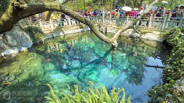 蝴蝶泉位于苍山脚下,因为老电影《五朵金花》而为人所知。这是一个泉水清澈的方形泉池,泉水的颜色十分漂亮。平时前来,能看到蝴蝶大世界内繁育的几十种蝴蝶,颇为有趣。 从下关乘车大概20多公里就可以到达蝴蝶泉,景区门口与泉水处有一点距离,步行大约十几分钟,景区内也有电瓶车可以到达泉水边。 来到蝴蝶泉的看点是泉水本身,这里的泉水清澈见底,而且由于富含离子使得水呈现一种奇幻的蓝绿色,不时涌出一串串银色气泡。在泉水边有曲折的大树倒映水中,非常漂亮。 第二个景观就是蝴蝶了,除了蝴蝶大世界之外,还能看到各种各样的蝴蝶标本。据说以往每到四月中旬会有上万只蝴蝶在这里飞舞,非常神奇。当地人关于这里有非常浪漫的爱情传说,因此青年男女此时也会来到这里,寻找自己的意中人。