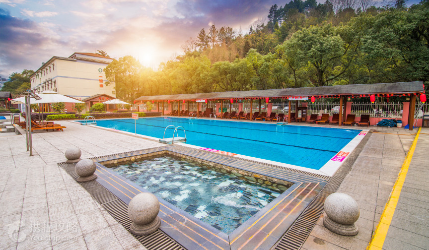 江西矿疗温泉坐落于江西宜春明月山5A级风景区--温汤镇,占地面积97亩,距宜春市区和明月山核心景区各15公里,东去南昌210公里、西往长沙205公里,具有高速公路和高铁可达,交通极为便利。院内安宁整洁、环境优美,有浴之醉人的温泉、洁净沁心的空气,森林覆盖率高达70%,可谓是人间福地、休闲胜境。水温常年保持在68-72摄氏度,水质清澈透明、温泉区域配备室内外标准泳池、亲子戏水池、养生池区、地热带、干蒸房、盐浴池等各特色功能池,让您舒解身心,养生康体。