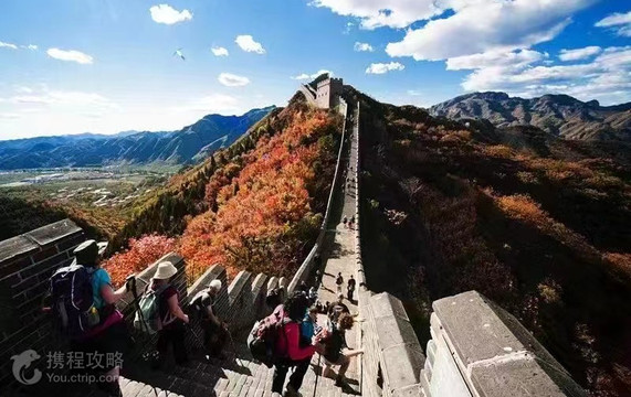 黄崖关长城位于天津市蓟县北侧,是一段始建于北齐,明代时由戚继光主持重修的古长城。这一段长城山势陡峭,长城气势壮观,而且游人不多。长城脚下还有很多农家院可以住宿吃饭,是京津地区周末休闲度假的好去处。 黄崖关长城有东西两个入口,东侧为太平寨,西侧是主入口黄崖主关,两入口之间的长城距离为2.2公里,游玩时沿着长城步行从一个入口到另一处即可,登长城需要1-2小时左右。另外,黄崖主关处还有一座关城可以游玩,总共在景区的游览时间为3小时左右。 一般游客前来都会先到达黄崖主关外,但是并不推荐在此进入景区,推荐的走法是先到达太平寨入口,从此进入后向黄崖主关游玩,这样一路上都是下坡路,比较节省体力,而且主要的农家院也都在黄崖主关附近,可以在游玩后直接入住休息,既不需要走回头路又比较舒适。两个入口之间有电瓶车可通,车程约半小时左右(15公里山路),车票为30元每人。 进入太平寨入口,首先会看到景区内的一座巨大的戚继光雕像,纪念这位名将在此重修长城主持战事,可以拍照留念。从雕像后进入,就来到了长城之上,可以沿路步行游览。从此进入的好处便是可以一路下行,比较节省体力,不过这一段长城较为陡峭,所以步行的时候也要格外小心脚下。路上游玩时可以看到旁边的山坡非常陡峭,露出黄色的岩壁,这也是黄崖关长城得名的由来。若是傍晚时分,夕阳照在山壁之上非常漂亮,这边是津门十景之一的“黄崖夕照”,摄影爱好者们一定不能错过这里。一路沿长城游览,中间会经过寡妇楼、鞑子沟、关城等,很多关城都有独特的故事,例如其中寡妇楼是修筑长城而死的战士的遗孀们用自己的抚恤金捐献建成,十分感人,可以好好参观纪念一下。 步行到达终点处即为黄崖主关,这里有一座关城,也称为八卦关城。整个城池都是古老的四合院式建筑,内部错综复杂却又方方正正,又称八卦迷宫,俯瞰拍照十分不错。关城内还有简单的长城博物馆、碑林、园子等可以随意观赏一下。 从关城再继续向西也有长城可以观赏游览,如果体力尚足可以前去一看。徒步约500米的上坡路即可看到黄崖天梯,这是黄崖关长城中尤为险峻和原始的一段,坡度极高,好像通向天际,适合拍照。走到尽头还可以看到一段保存至今的北齐长城,非常古老和原始。 游览之后便可从黄崖主关处离开景区,当天可以返回,也可以在此留宿一晚。附近有一些淳朴的农家院,可以用餐、住宿,农家标间约100元左右每间,可以在此品尝农家菜,呼吸清新空气,享受地道的乡村生活。