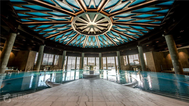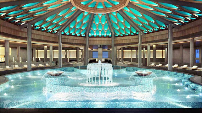 枫叶小镇温泉度假区位于枫叶小镇奥特莱斯北侧,在室内温泉区,规划了38个温泉泡池,构建了超过6000平方米的养生中心。通过天花造型和室内装饰,配合精心设计的灯光效果,着意营造温馨、舒适、高格调的放松空间。这里有冰火池、玫瑰花瓣池、五行池和鱼疗池等数十个功能各异的汤池。 德国卡拉卡拉水疗馆使用了正多边形木亭的构造,造型独特,与室外温泉池相辅相成,搭配和谐。配有先进的深度放松系统,包括超声波躺浴、坐浴、鸭嘴冲击浴、旋流冲击浴、灌顶冲击浴、足底针刺洛等,让你忘却忙碌的都市生活,彻底放松身心。 水疗馆圆形大厅的四壁为玻璃幕墙,环境整洁、通透,打造出无限蓝色空间,沐浴其间可以眺望远方,让身心得到深度放松。