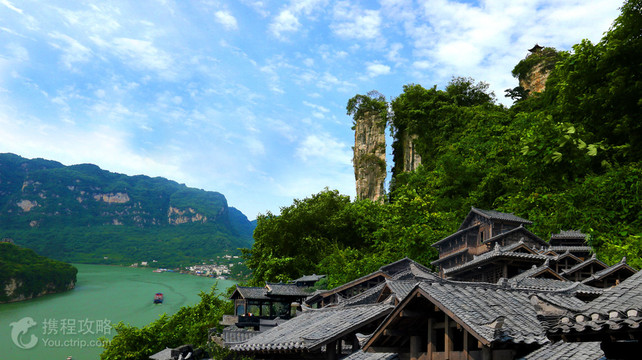 三峡人家位于长江三峡中奇幻壮丽的西陵峡境内,由山上人家、水上人家、溪边人家三个区域组成。在这里,你可以通过船游与步行相结合的方式,全方位、多角度领略三峡原生态的自然风光。景区每天有丰富多彩的民俗表演,有机会亲身参与其中,深刻感受古老而神秘的巴楚文化。 从宜昌市区出发,可以通过公交车或者游船到达景区,全程约1-2小时。景区的游览区位于长江的南岸,游客必须在北岸“游客服务中心”旁的“胡金滩码头”坐渡船到南岸,所以景区门票是和往返渡船票捆绑销售的。景区可以分为山上人家(靠近索道站码头)、水上人家、溪边人家(靠近龙进溪码头)三个区域,其中水上人家和溪边人家是连在一起的,都在长江边,步行游览即可。而山上人家的各个景点都分布在江边的山上,游玩时可以步行爬山,也可以做索道上、下山。游客可以根据自己的喜好选择游玩的顺序,游玩的顺序不同,在北岸乘坐渡船时选择的线路也有所不同。 整个景区绿树葱葱,溪水潺潺,犹如进入了一个大氧吧。在山上人家区域,游客可以观赏到当地特色民居“吊脚楼”,并在楼内的各个居室了解到本地先民的生活场景。而在山中的人造景点“巴王宫”内,可以欣赏到具有古巴人风情的仿古表演。此外,矗立在悬崖绝壁之巅的“灯影石”,也是拍照留影的好地方。 下山后,沿着长江往下游方向走去,不远处就是水上人家和溪边人家。在水上人家区域内有“船工号子”的表演,号子既有雄壮激越的音调,又有悦耳抒情的旋律,听着这些古老的曲调,仿佛看到了昔日船工们在长江中穿激流、过险滩的艰辛生活。 水上人家附近就是长江和龙进溪的交汇处,山上人家就在这里。这里依山傍水,一半着陆,一半入水,青山绿水之间,景色如画。在这里能看到溪边洗衣服的幺妹子和在溪流中荡舟的本地姑娘,清新美丽。溪水边的山坡上分布着很多的阁楼,楼内展示了当地人家的日常生活,还有精彩的抛绣球、抢亲、入洞房和纤夫拉纤的表演,不少演出还会邀请游客亲自参与,比如扮演新郎等。