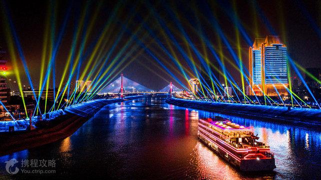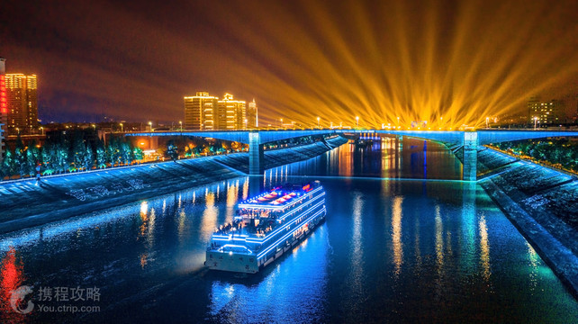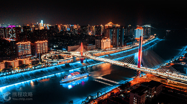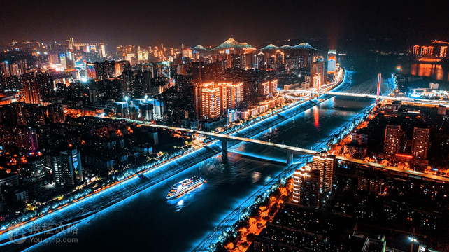华灯初上夜未央,夜色中的宜昌如同一颗镶嵌在长江上的明珠,江岸高楼林立,万家灯火辉煌,美不胜收。登上宜昌交运长江夜游游船,你就能置身长江之中,以全新的视角,遥望车水马龙的城市夜色,领略宜昌的另一面风情。 游船每天19:30从三峡游客中心发船,沿途经过天然塔、宜万铁路大桥、夷陵长江大桥、滨江公园、镇江阁、葛洲坝等众多的宜昌城市地标。这些被霓虹灯点亮的地标建筑,在潺潺江水和粼粼波光的映衬下,又散发出另一番风情,带给你与白天截然不同的新奇感受。 夜间体验葛洲坝,也是此条路线的一大亮点。白天雄奇伟岸,而在夜色与灯光的笼罩下则透出一种神秘幽美的气质。此时随船过坝,体验船闸泄洪、水涨船高的惊心动魄,是不容错过的经历。