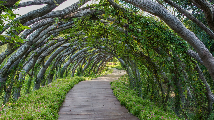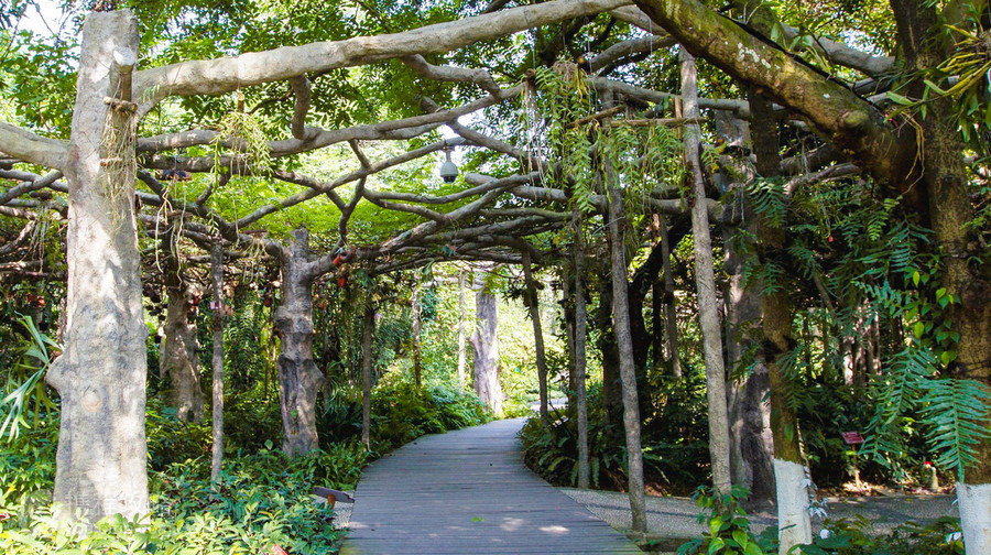 广西药用植物园坐落在南宁北郊,这里不仅植被茂盛,也种植着各种各样的药用植物。在这里你可以见到两面针、草珊瑚等平时听说过的草药植物,更可见到许多闻所未闻的药用植物,令人大开眼界。植物园园区很大,建议从西门(2号门)进入,它靠近科普园。除了西门外,园区还有南门(1号门)及北门(3号门)。从南门门口走到科普园大约15分钟左右的路程。从西门进入后,会顺序经过药园纪念林、药物馆、广西特产药物区,验方长廊、科普园等。科普园以李时珍的《本草纲目》为蓝本,分为木本药物区、《本草纲目》草部展区、藤本药物区等区域。草部是方便和值得仔细观赏的一处,你可以找到熟悉的两面针、草珊瑚、金花茶等植物。有趣的是里面的百病主治验方长廊,它按照人体系统疾病对植物进行分类,游客都可以试着找找有没有适应自身病情的植物,以便“对症下药”。过了科普园就是往出口方向,依次有濒危药物区、荫生药物区、民族药物区、药用动物区等多个特色区域。动物区一般小朋友会很喜欢,可以看到很多梅花鹿,还有鸵鸟等动物。园内还有一个药用植物博览中心,客厅里展示着几十种草药,进去后全是在泡脚的,可能是指用草药泡脚,很多游客会坐下在这里休息下泡个脚。整个植物园内林木苍翠,藤蔓纵横,到处都是一片的绿色,加上棚架点缀其间,空气特别的清新。来这里逛逛,还能增长些药用植物的知识。