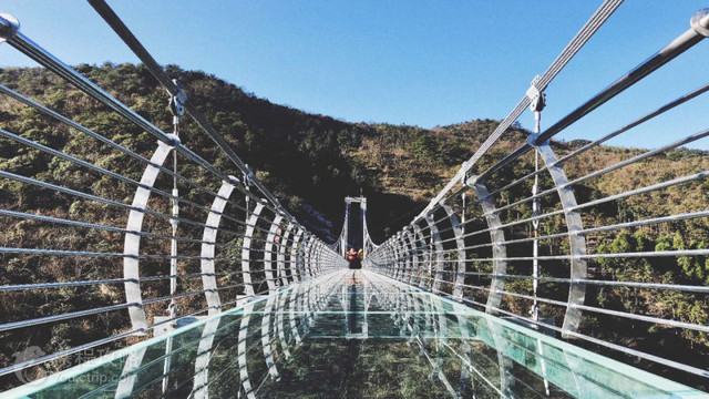 风崖谷景区位于金华磐安县尚湖镇岭干村,是集康养、康乐、康体为一体的养生景区。这里原生态的自然植被,众多的奇珍异草,方圆四十平方公里的无人区,风貌一如原始森林。景区范围内散落着山涧裂谷、崖洞奇石、倭寨窑场,被誉为磐安的“九寨沟”。景区一期开放的7D高空玻璃桥,玻璃桥凌空218米,长418米,宽约3米。桥面采用7D魔幻艺术工艺,运用视差营造立体的景观效果,行走于上,交互性极强,玻璃瞬间的变化,让游客所有感官被刺激、惊吓。还有玻璃景观台,平台伸出崖壁50米,下距谷底260米,由全透明玻璃构成。玻璃剔透,漂浮于高空,站立其上,脚下风光一览无余,满山绿意,爆屏而出,绚丽美景尽收眼底。