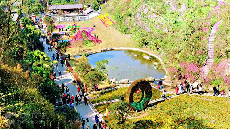 古郡·花果溪位于四川省乐山市犍为(Qiánwéi)县城东下渡乡白杨村,利用山形地貌和区位优势,以四季花展、婚庆文创、农旅观光为创意,打造集餐饮、娱乐、休闲、度假、观光为一体的农旅融合乡村度假近郊游。目前已经建成有犍为长城、水帘洞、禅修台、五彩滑道、娱乐设施、观赏花卉树木数万余株、荷花梯田、桃园、兰园、樱花林、果园、放生池、奇石园、户外拓展基地、桃花源瀑布、停车场、热气球和各种小景观等。