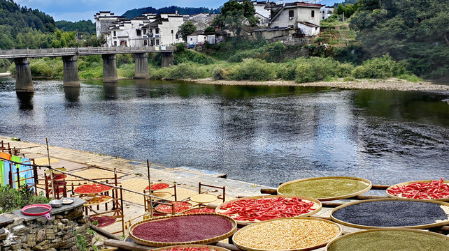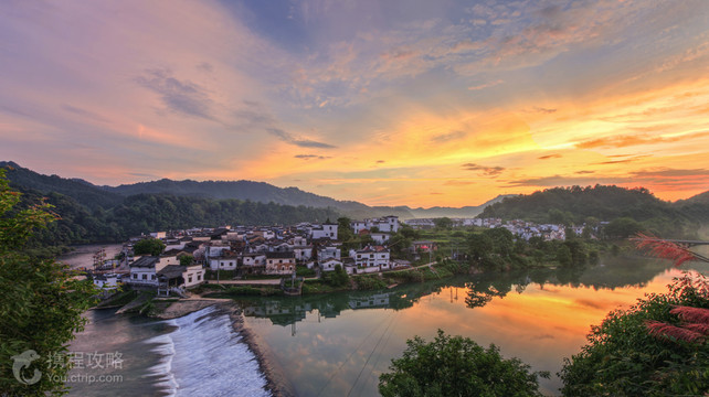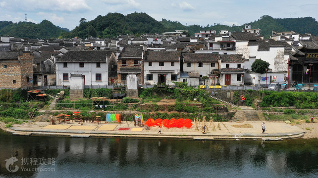 汪口是婺源东线上的一个徽州古村落,位于一条大河的一侧,对面是起伏的向山。相对来说,这里没有被太多的商业化,仍然保留着原汁原味的古朴民风。村内有个建于清代乾隆年间的俞氏宗祠,细腻的雕刻建筑十分值得一看。 村子不大,慢慢走完大概只要一两个小时。村口有两棵大樟树和水碓、观景台,往里走就是一条沿着河的古道,这里几个主要的看点都在路边。从一头走到另一头,基本就能把景点看个遍了。相对来说,这里还没那么商业化,虽然村里也有一些商铺,但街上几乎听不到拉客的吆喝声,让人可以静下心来欣赏景色。如果时间充裕,你也可以走进村中步道边的小巷弄,能看到更加生活化的老宅。 除了古朴典雅的一经堂、懋德堂、大夫第和养源书屋等古建筑,村里不容错过的莫过于东关大桥附近的俞氏宗祠。宗祠是清代建筑,以木雕闻名。不仅已有上百年历史,建筑内部凡是木质构件都精雕细琢,非常华美。游人来此无不仰着脖子细细观赏那些繁复的花纹,感慨不已。宗祠出来再往前走一点,可以看到被房子遮住的滚水坝,坝的一边水面如镜,另一边激流翻滚,也是很养眼的景观。 平渡堰漂流码头也在这附近,可以坐上竹筏一路漂流回入口附近的西关大桥。而如果由东关大桥走到对岸,你会发现有一条游步道通向山上。这边游人非常少,山上有不少古树,尽可以享受大自然的清静。往山下看,是永川河碧绿的河水,和水面上点缀着的竹筏,对面青瓦白墙的古村落也尽收眼底。这样一路走下山便也回到入口了,而且不用走回头路。