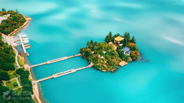 巴松措位于林芝工布江达县,是藏传佛教红教的著名神湖,宗教地位很高。湖水碧绿柔美,周围青山依依,风景非常不错。湖心岛上的措宗贡巴寺历史悠久,有特别的雕塑和建筑,也是祈福的圣地。 这里旅游开发比较成熟,是西藏比较老牌的景区。进入景区后,需要乘坐观光车游玩,路上一般会停留三个点,分别是湖心岛旁、观景台和结巴村。另外,景区内还有游艇可以游湖,大约需要另外付费100元。 景区可以通过建设在湖面上的步行栈道登岛,岛上的措宗贡巴寺建于唐代末年,岛上的礁石均雕刻成了别致的动物形象以及佛像,特别神奇。观景台离湖心岛不远,这里角度稍高,可以俯瞰湖水和小岛,景区经典机位就是出自这里。结巴村是湖边一处安静的村落,由于很多旅游团都不会在此停留,反而成就了这里的宁静悠然,村庄颇有些瑞士小镇的风貌,十分不错。