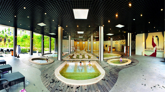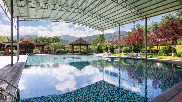 清水天一温泉度假村位于连城县,毗邻以丹霞地貌出名的冠豸山。从空中俯瞰,度假村被原生态森林环绕,满目青翠。温泉公园是以“客家文化”为主题元素的大型半露天温泉,拥有50余个温泉泡池,聚集中草药、牛奶浴、鱼疗等各种温泉泡汤疗法,夏季也有开放儿童水乐园、冲浪池,能满足不同需求的游人。酒店客房也有带独立泡池的房间,豪华房自带的露天阳台能饱览山景。适合全家人周末度假,泡汤养生的同时,还能体验民俗风情、客家文化。