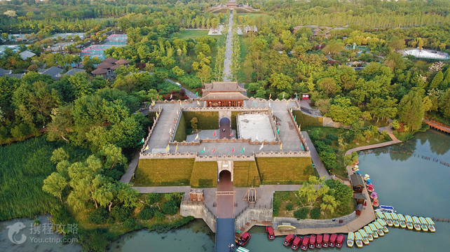 扬州宋代有“一地三城”之说,分别为宋大城、保祐城、宋夹城。而宋夹城在保祐城和宋大城之间,呈南部略偏东、北部略偏西的狭长方形,至今已有近800多年历史,虽然后来经历战乱等历史因素影响,但城池地貌特征依稀可见。 如今的宋夹城考古遗址公园就是在原址上复建的,宋城不再尘封,显出扬州的古老底色。 宋夹城考古遗址公园保持原来宋夹城四面环水的特色,西入口为宋夹城遗址公园主入口,三座城门中,西瓮城门和东瓮城门建有高15米的城楼,北城门外建有一座长147米、宽6米用油桶铺上木板的浮桥与平山堂路相连。目前可由北城门的浮桥、西城门栈道进入。宋夹城城门也就是公园的大门,门口有“宋代士兵”把守,显现出城池的威严。 城楼以宋代城池形制为参考,以双瓮城形式展现,本身就是不错的景点。 宋夹城遗址公园陈列馆还有几十个真人一半大小的“士兵”和二十多位真人一般大小的将军,有岳飞、韩世忠、文天祥、李庭芝、姜才、刘锜等。岳飞的事迹可以说是家喻户晓、妇孺皆知,韩世忠的“大仪大捷”、刘锜的“瓜洲皂角林之战”都被列为“中兴十三战功处”,他们的故事可歌可泣。