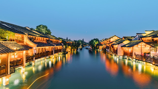 乌镇西栅景区是乌镇的精华所在,虽与乌镇东栅景区同为主要景区,但这里没有乌镇东栅景区的繁闹市井,一切都经过重新整修和设计,街头巷尾的咖啡馆、酒吧,充满了文艺情怀。乘摇橹夜游是非常值得推荐的体验,灯影桨声里的江南水乡分外迷人。 西市河贯穿景区东西,纵横交错的小河道将这里分为许多小岛,各部分又有数十座各异的古石桥相连接。老建筑依水而建,典型的江南水乡小桥流水景致。除了可以入内参观的景点,景区内还有不少精致的小店、咖啡馆和酒吧,适合静下心来慢慢逛。 游玩时可以步行,也可以坐景区的交通车或游船代步。如果是白天,顺着河北岸的西栅大街走走,昭明书院是昭明太子萧统读书的地方,现在是个图书馆,可以来这儿读会儿书,或者在入口处的留言墙上贴张小纸条,留下自己的心情;三寸金莲馆可以看到几百双缠足鞋。 南岸东面的叙昌酱园老远就能闻到酱油的味道,可以看到院子里做酱油用的露天的大缸,或者买点酱油做纪念;迁善桥附近的女红街有许多特色商铺卖些刺绣、围巾之类的手工制品,女孩子不妨来这里淘点小玩意,然后去对岸的中国邮政(乌镇邮局)给亲友寄上一张带着乌镇老邮局邮戳的明信片,文艺又浪漫。 景区的夜景是许多人钟情这里的理由,晚上古镇里的桥梁和房屋都亮起灯光,乘着小船驶在倒影里,感觉非常好,拍出的照片也别有一番风情。此外,还有一些体验项目可以参加,天气晴好的晚上,在大戏院广场用老式胶片放映《三毛流浪记》、《地道战》等黑白老电影,坐在长条椅上看电影的感觉很特别。如果对传统艺术感兴趣,不妨去水上集市听花鼓戏,大戏院书场听评弹。