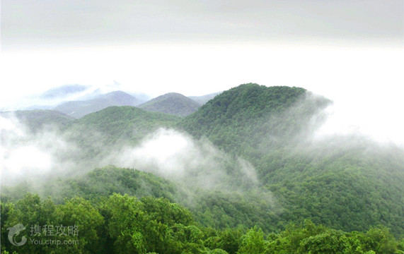 老山国家森林公园位于南京市长江北岸浦口区中部的老山林场,横贯浦口区境内,素有“南京绿肺、江北明珠”之美誉。森林覆盖率超过80%,是金陵的“绿肺”。老山自然景观素以“林、泉、石、洞”四绝著称,层峦叠嶂,风光秀丽。高峰奇险俊美,岗阜跌宕起伏,茂林休竹滴翠,青山绿水怡人,曲径通幽访古,禅房悟道听经,园中有寺、墓、泉、洞,自然景观与人文景观融为一体。老山的“狮岭雄姿”早在清初就被列入金陵四十八景之一。老鹰山风景区老鹰山风景区位于老山森林公园中部,江浦森林大道贯穿其中,珍珠泉景区与此毗邻。境内峰峦叠嶂,共有大小山峰近百座,平均海拔200米,最高峰大刺山海拔442米,古木参天,秀竹林立,景色宜人。老鹰山观光塔建于1988年,为五层围栏式六面了望塔,高约20米,位于海拔326米的老鹰山顶,起初主要用于森林防火了望,后因森林旅游的开发,现在主要用于旅游观光。站在塔上,眼前正对面的浦口的象山是您所在位置的南方,右边的这座山叫面子山,左边的这座山是中椅子山,依次向左的山峰为帽子山、大椅子山、黑石山。还可远眺古城金陵、长江水色,近观老山全貌,田园风光;俯视百鸟飞翔,仰望雄鹰展翅。