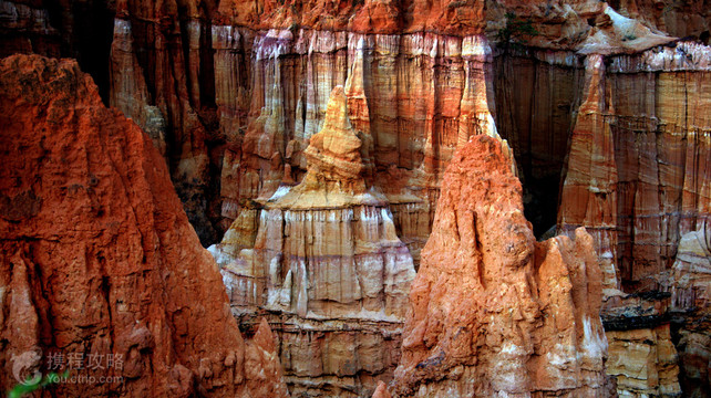 元谋土林位于楚雄州元谋县境内,元谋土林与陆良彩色沙林、路南石林并称“云南三林”。这里是摄影爱好者的天堂,拍出的照片非常壮观。元谋土林还是《无极》、《千里走单骑》等著名电影的取景地。 景区内到处都是高耸的土柱,千姿百态,土柱中夹杂的石英、玛瑙等物质在阳光下反射出奇异的光彩,让人不得不感叹大自然的鬼斧神工。这眼前的景色,不拿相机记录下来都觉得可惜,所以不要吝啬快门,拿起相机拍拍拍吧。游客还可以在此住宿,拍摄日出日落。晚上仰望繁星,看着浩瀚的星空,是一种美的体验。