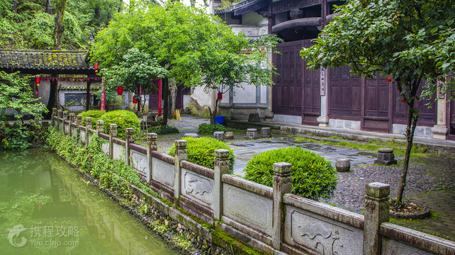 绩溪紫园位于绩溪县城东上马石村,是通往龙川景区的必经之路,占地面积一万余平米。全园借山取景,截水养气,以山之静水之动,将自然、人文兼融于一身,汇聚了明清时期徽州古民居建筑的精华,更以其特有的宗法意识、区域风格和艺术造型,营造出它浓郁的历史气息。 走进绩溪紫园,“民居如星列棋布,遥望粉墙黛瓦,松枫掩映,房舍栉比,宛若城郭”。身临其中,触动视觉神经的是秀美的风光;震撼心灵的是叠递式的马头墙;意味深长的是幽静的窄巷。这些散落如珍珠般的古民居,融山水于一炉;集人文道德于一统,成为徽州人展示内心世界的一道美丽风景线,也是徽州六百年聚落文化的缩影!