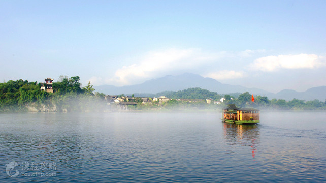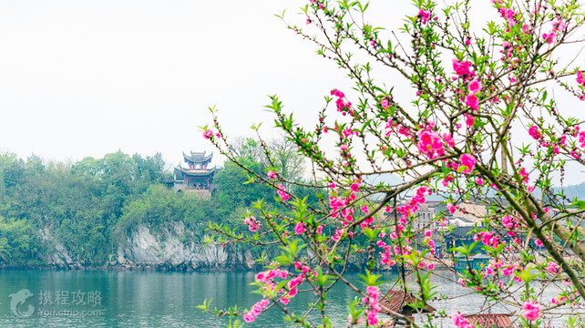 桃花潭位于泾县西南约40公里处的桃花潭镇,因李白在此写下“桃花潭水深千尺,不及汪伦送我情”而闻名。桃花潭镇古称南阳镇,桃花潭其实是青弋江的一段,东岸的陈村与西岸的万村隔潭相望,这两座徽派古村算不上精致,却有一种沧桑的美。老街上铺着不规则的鹅卵石,两侧墙壁斑驳,一旦穿过狭窄的老街,见到豁然开朗的清澈潭水,令人惊喜。 游览指南 因为桃花潭客运站在东岸,一般游客会从陈村开始游览桃花潭,客运站北边150米便是景区的游客服务中心,由此进入景区。 首先看到高三层的清代文昌阁,若逢3、4月,沿路都是盛开的油菜花。接着到中华第一祠景区(翟氏宗祠),翟氏是村中大姓,祠堂始建于明代,前后三进规模庞大,建筑材料采用珍贵的楠木、汉白玉,祠堂里挂着不少御赐匾额。 沿着鹅卵石老街前行,经过南阳镇门楼才算真正进入了陈村,街边有一些小铺子和古玩店。老街的尽头是高两层的踏歌岸阁,可以攀登,楼阁旁的“梦潭轩”古文物陈列馆收藏着石碑、木雕等文物。穿过踏歌岸阁的门洞,桃花潭便在眼前,对岸的垒玉墩和怀仙阁倒映水中。东园古渡即指坐渡船,摆渡到对岸时可以留意一下垒玉墩下的书板石,一层层岩石犹如书页。 小丘垒玉墩不高,所以登临上面的怀仙阁便很轻松,阁楼上视野,能将桃花潭和陈村尽收眼底。然后逛逛西岸的万村,万村比陈村更为陈旧,只有靠近码头的桃潭西岸的门楼和形义门有模有样。万村的其他景点还有采(彩)虹桥、传说中汪伦用来邀请李白的“万家酒店”遗址、现代新修的汪伦墓等。 无论是走查济、桃花潭一线的游客,还是走太平湖、桃花潭一线的游客,都建议最后回到桃花潭,在景区内住一晚,因为桃花潭的傍晚与清晨别有风情。傍晚在踏歌岸阁正好能看到西边桃花潭的日落;清晨潭面雾气弥漫,挽着青山,朦胧了小舟,像一副水墨画,5、6月看到晨雾的概率会更大些。 桃花潭食宿 不用担心桃花潭的食宿,在景区里当地人开的农家菜馆或者客栈都能解决吃饭问题,菜肴以土鸡、河虾、冬笋等乡村土菜为主。