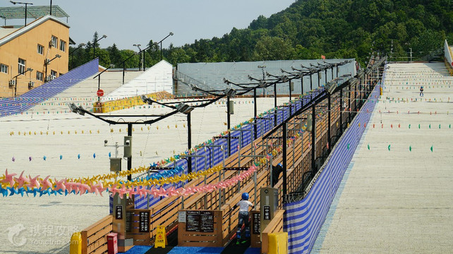 三角山四季滑雪场是四季开放、昼夜开业的旱冰滑雪场,将运动健身、休闲旅游与自然山水巧妙融合,突出了人与自然的和谐。这个项目是近几年国内外颇为流行的室外运动项目。为了让游客朋友一年四季随时能够体验到滑雪的乐趣,景区采用特殊工艺制成的PVC雪垫铺设滑雪场,它和天然雪场的滑雪效果极为相似,安全舒适。