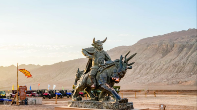 火焰山景区位于吐鲁番市东侧连霍高速旁,距离市区车程约30公里,是一处以火红色的赤褐砂岩地貌为主的景区。这里历史上是高昌古国的所在地,而在传说中,这里是《西游记》唐僧师徒借芭蕉扇用以扇灭大火的火焰山所在地,是很多游客到吐鲁番旅游的好去处。火焰山景区分为地下、地上两个部分,游玩一圈下来大约需要1-2小时左右。一般游客来此都会先前往地下部分,这里是一座长廊式的展厅,展厅的棚顶被设置为天空样子的灯饰,很有特色。展厅内有与高昌古国相关的人物雕像和介绍等,都可以参观一下,了解高昌古国的历史。在展厅里还有纪念品商店和餐吧等,可以根据个人兴趣进入消费。参观完地下景区后即可前往地上部分,地上部分的景观便是火红的岩石和山崖地貌,十分壮观,非常适合拍照。地上的广场上有很多西游记主题的雕塑,还有名为金箍棒的巨大温度计。夏季的火焰山景区天气特别热,温度可高达58度,而且气候十分干燥,此时来此游玩一定是一次特别的体验。但是游玩时要注意多带饮用水,并且要准备遮阳帽、墨镜、头巾等防晒防尘装备,以免中暑。