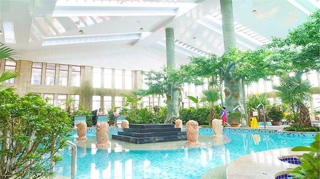 北黄海温泉位于辽宁省丹东市东港市椅圈镇,是中国北方唯独一个的海水温泉,也是全球现存的五大海水温泉之一(与意大利西西里岛夏卡城温泉、日本九州鹿儿岛砂蒸、台湾绿岛朝日温泉、厦门金汤湾温泉齐名)。其温泉水源自地下130米深处,出水温度高达72℃,富含硒、偏硅酸、氯化钠等多种矿物质和微量元素,对人体健康有显著的理疗作用,尤其对风湿、关节炎、皮肤病、心脑血管疾病等有良好的疗愈效果。 主要特色 珍稀的海水温泉 北黄海温泉因海水倒灌渗透地下深层,与火山岩和变质岩接触转化而形成,矿化度高,水质独特。 2.丰富的温泉设施 温泉区设有100余个泡池,包括20个室内温泉池、50个室外温泉池、4个溶洞温泉池、5座VIP汤屋,以及1个室内泳池和多个戏水区。泡池种类多样,涵盖草药沐浴区、精油区、鱼疗区等,满足不同游客的需求。 3.热带雨林风格设计 温泉馆采用热带雨林风格,营造出“林中有景,景中有泉”的氛围,同时设有大型戏水区、人工造浪池、彩虹滑梯等娱乐设施,适合家庭和亲子游玩。 4.综合度假体验 北黄海温泉小镇集温泉疗养、休闲娱乐、餐饮住宿、商务会议于一体,配套设施齐全,包括温泉度假酒店、水上乐园、婚宴大厅、多功能会议厅等。