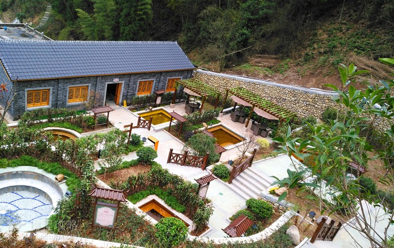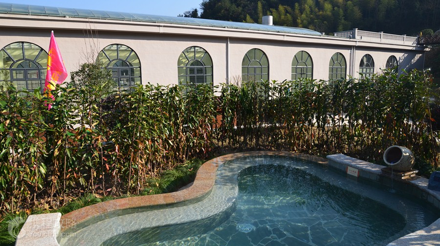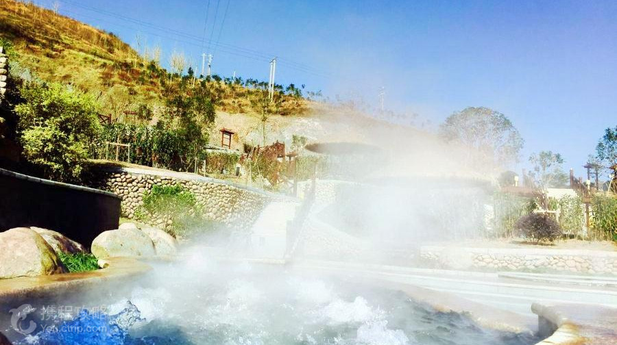 大盘山温泉水源于1500米地下,出水温度64度,井口温度45°,由室内水疗区、四大美人汤、冰火泉、四时养和汤、三才汤、六福汤区等特色汤池组成。