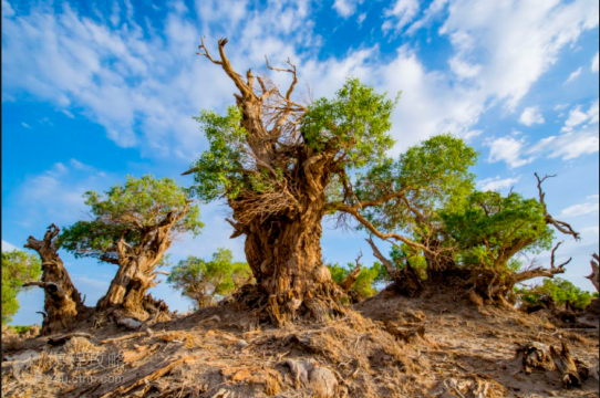 伊吾胡杨景区位于新疆哈密市伊吾县淖毛湖镇,是世界仅有的三大胡杨林之一,是中国境内分布较为集中的胡杨林,也是世界极古老、树形极具特色、道路通达条件极好的原始胡杨林。景区面积47.6万亩,开发游览环线38公里。胡杨,亦称“胡桐”,维吾尔语称“托克拉克”,意为“很美丽的树”。胡杨是一亿三千五百万年前就出现的树种,是世界古老的杨树,生物学家称它为“第三纪活化石”。胡杨耐寒、耐热、耐碱、耐涝、耐干旱,用不屈不挠的身躯阻挡了沙暴对绿洲的侵袭,形成一条雄伟壮阔的绿色长廊,创造了“丝绸之路”的文明。沿着38公里的胡杨林景观路,可以近观一千年至九千年树龄的胡杨,仿佛进入时光隧道,经历生命的轮回,可谓:一朝走进胡杨林,一日感受万年史。万千胡杨树在戈壁大漠中舒展、摇曳,四季不同的容貌,昼夜变幻的色彩,形成一幅幅生动的画卷。如今的景区已成为摄影家、绘画家、诗人们的创作天堂,更是影视佳作诞生的摇篮。