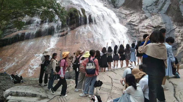 九龙瀑位于黄山风景区南大门以东3公里处,景区内的景点名字多带有“龙”字,山路边一直有流水相伴,特色在于一条折成九段的瀑布,每一段瀑布底下都有漂亮的水潭,水色碧绿,不亚于附近的翡翠谷,是亲水的好去处。 九龙瀑虽然就在黄山脚下,但是门票不包含在黄山门票内,和黄山分开售票。游玩九龙瀑的好时节在春夏季的雨后,瀑布气势恢弘,若逢冬季枯水季,瀑布只是细流,以看山景为主。 从写有“九龙瀑”三字的大门口,到看见瀑布,有挺长的一段路要走。进门不远处的鱼池里养着不少肥肥的红鲤鱼,继续往前走,大片竹林印入眼帘,路上会碰到轿夫问你要不要坐滑竿,九龙瀑在看到瀑布以后有一段比较陡的山路,不过总体来说,山路要比黄山上缓,建议自己爬,权当黄山脚下的热身运动。 经过几个水潭后,能看到龙禅院,寺庙不大,两旁的树枝上挂满红布条。再往上走是梅林书屋(院),在遗址上复建,据说是清朝歙县人父子丞相曹振镛、曹文植读书的地方,书屋前的浅滩里生活着小石鱼,可以捉鱼玩。接着经龙母潭、青龙涧、九龙瀑-九曲峡后,即能看到下方的瀑布九瀑。然后走到九龙瀑-会龙亭,现在一、二瀑是上不去的,走龙心潭方向看其他几道瀑布。 到龙心潭遇岔路,一条通往三、四、五瀑,另一条通往七、八瀑,七瀑和八瀑间的路上能看到双龙松,都看过后回到龙心潭,走观瀑亭方向,观瀑亭看瀑布的视角很好。 从观瀑亭往上走4公里是云谷寺,云谷寺是俗称的黄山后山登山处,上黄山得买黄山的门票。从云谷寺步行上黄山可到达白鹅岭,这里也有云谷索道坐;从观瀑亭往下走1公里可从黄山东大门出景区,你也可以原路返回,从九龙瀑大门出景区。