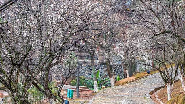 梅关古道位于江西大余县与广东省南雄市交界处,是全国保存得较完整的古驿道。梅关古道大约建造于秦汉年间,现存部分全长约8公里,路面约6尺宽,整齐地铺着鹅孵石,道旁是繁茂的灌木丛,两侧山崖树木葱茏,层峦叠翠。 在古代,梅关古道是沟通中原与岭南的古代交通要道。秦始皇统一中国后,在公元前214年攻取岭南,筑起梅关这道险要关隘(又称“秦关”),打开了沟通中原南北的通道,这就是起初的梅关古道。据说如今每当冬季,古道一带梅花盛开,十分好看。 梅关古道南面的梅关有“岭南第一关”之称,因其南北遍植梅树,寒冬季节时梅花绚烂绽放的姿态便与古道雪景相融,景色蔚为壮丽雄奇。