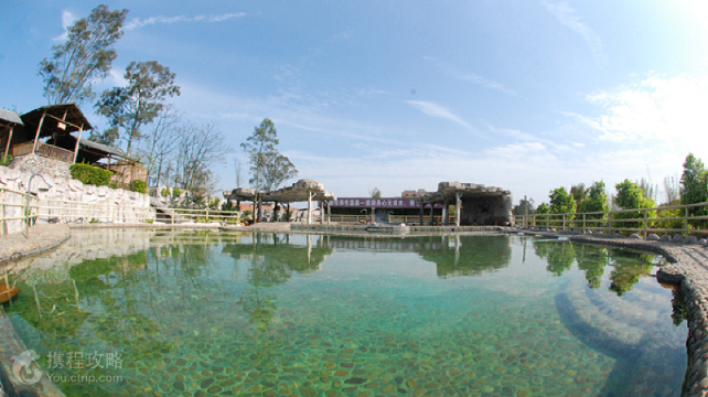 粤北古镇南雄市西北6公里的龙华山麓脚下有一隆起坡墚蜿蜒起伏,曲折百丈远迂回三千尺深,依山傍水,行气流水,是龙华山温矿泉度假村所在地。北连百顺君子岭,浩然气魄,西合苍石奇峰朗朗精神,东眺日出皇恩珠玑,南邻湛凌西北交汇聚合,山览层层拱迎侍候。丰富的天然温泉蕴藏其内:地层下200米处千百年形成的南雄大断裂构成罗佛寨群多条裂隙地热带交汇处,大自然赐予四口日夜不停流,人们可闻可饮的自涌重碳酸温泉口。含多种人体所需的微量元素,被地矿部斟评为“珍稀温矿泉水”。度假村经名山高人斟点依大格局,合温泉自涌地点,北建天池面积200平方,分高、中、低温池,静动有谐,体会到一览众山小“百泉尽沐身,心静涤尘埃,洗弃烦心事,又是好一天”的境界。南建八卦温泉,把人的十二生肖镶入八个卦位池,在泡温泉中体会“沐八卦,转乾坤”的作用。龙华池(南天池)在村内高点,有隔山湛凌两水之能。南北之中:人工垒起一座山依圆润四周来风,南北之中建有长50米,面积1000平方的温泉游泳馆,让人们在运动中体验温泉水的作用。南北之中建一地下温泉迷宫,在泡温泉中体会“下地入宫寻往事,死去活来又一回”脱俗之感。建有风格各异的宾馆区和别墅区:有采用天然杉木按五行建成的水木龙华、金木龙华、土木龙华、火木龙华、杉木坊、杉木居、怡然阁和宾馆A区、B区等居住区。以营造家庭氛围,乡土风情与人体相合为主题,体会“日沐温泉浴,夜闻鸟虫鸣,春梦一觉醒,仿如在仙境”清心正本作用。
