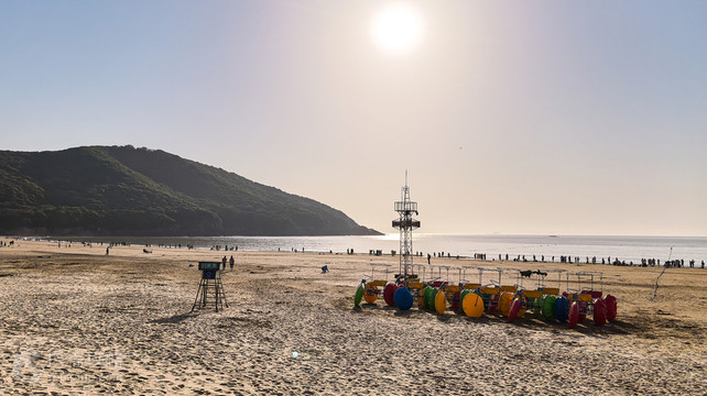 东沙景点是朱家尖“十里金沙”较长的沙滩,长约1300米,宽约250米,南北向,呈弦月形。东沙沙质细腻滑润,脚踩不下陷,海浪轻涌,往来奔返,层层叠叠,煞是好看。在这里,你可以冲浪、游泳、篝火晚会、露营、烧烤......这一切都是大自然的馈赠。站在沙滩上,领略海洋生态风光,等着一浪一浪的海潮过来,让心一起汹涌澎湃。“东沙涌日”是这里的一大奇观。