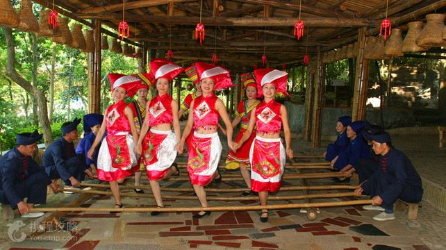 伊岭岩位于南宁北部、武鸣城区南部,是南宁周边有名的一处喀斯特溶洞。整个岩洞的形状像一个海螺,分为三层,其中游道曲折迂回,层层叠叠的柱幔和林立的石笋,给人扑朔迷离的感觉。 景区内的游览,要全程在景区导游的带领下进行,无需另外付费。不过散客可能需要在大门口等待,凑够人数了统一入洞,一般等待时间在半小时左右。洞外游览大约需要一小时,可以游览一个人造的壮寨,听导游讲讲壮族风情。若是遇到喝米酒的环节,可能需要准备些零钱。 寨子的尽头是岩洞游览大约也是一小时,因为每参观一处景点会关灯,再开下一个景点的灯,所以参观途中务必跟紧导游,他会指点你每一处值得一提的景观,以及与之相关的传说故事。溶洞中,较大的地方可容上千人,较小的地方仅容一人通过。游过岩洞,也可去观赏壮族歌舞表演,参与跳竹竿舞之类的体验项目。