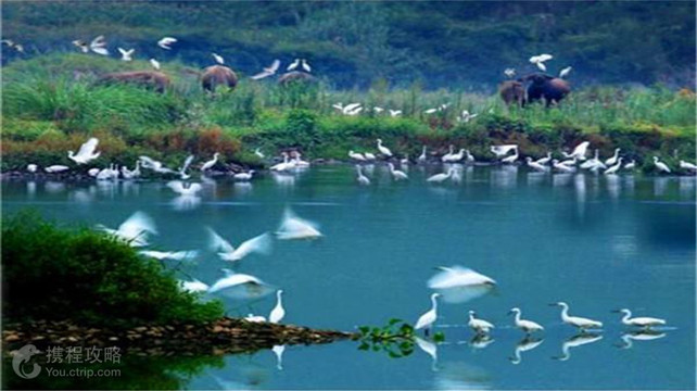 花岩溪有着丰富的森林资源,洁净的高山平湖,特色的农家旅馆,这里层峦叠嶂、沟壑相连,有上千亩原始混交林,特别是每年的3月-10月,数万只白鹭在景区内五溪湖畔的森林里栖息,为花岩溪更增添了迷人的风景线,被誉为“中国白鹭之乡”。花岩溪一带山环水绕、景色秀丽,杨公寨、紫云山、九龙山、李家寨环绕四周,闻名遐迩的五溪湖和龙凤湖分别处于景区的正北和西南面。山环水绕的五溪湖,松涛掩映的银盘山,香火缭绕的仙池古寺,一览众山小的观鹭台,隐逸避世的古风民宅,翘角飞檐的民俗文化村,古木参天、神秘莫测,徜徉其间,若梦若仙,令人心旷神怡,流连忘返。景区内的观鹭台是欣赏白鹭的好视点,初春至5月上旬,可以看到白鹭在树上筑巢的繁忙景象;5月中旬至6月,白鹭在巢孵蛋,清晨和傍晚还可以看到白鹭成群结队飞出飞回的景象;7、8月可以见到白鹭父母教小白鹭展翅学飞的情景。