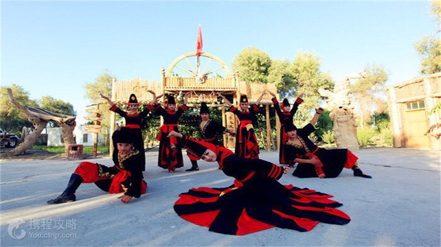 刀郎部落又称多浪部落,位于阿克苏市南部的阿瓦提县,距离阿克苏市区约58公里,距阿瓦提县县城约18公里,是一处以刀郎民族的民俗风情和沙漠、河流、胡杨林风光为主的景区。景区内风光优美,娱乐活动众多,还可以观看到神秘刀郎民族的风情,是阿克苏市旅游的好去处。刀郎部落的面积较大,长宽都有近1公里,进入景区后可以步行游玩,大约3-4小时为宜。景区的西侧紧靠河流,这里种植了百果园,环境清新优美,在遍地戈壁的新疆地区十分独特。河滩上还修建了沙雕公园和林则徐雕像等,适合拍照合影。在河中央,有一处水上娱乐区和一座露天的生态游泳馆,可以在此享受玩水的乐趣。景区的中部,是以休闲娱乐和展示刀郎民俗文化为主。刀郎族是新疆塔里木盆地周围的原始居民,一直生活在与世隔绝的大漠绿洲之中,保持了特有的民俗风情。这里有一处民俗展览馆,可以进入参观,深入了解刀郎民族的故事。另外,这里还有葡萄园、无花果园、垂钓区、自助烧烤区、农庄等,可以前来娱乐。景区东部,则是以胡杨林风光为主,这里大片的原始胡杨林,可以前来观看这些大漠上坚韧的树种,拍摄摄影大片。在东部的南侧,有一处原始刀郎人村庄,复制了很多刀郎民族生活的场景,有房屋、木车、劳作工具等,可以前去参观。
